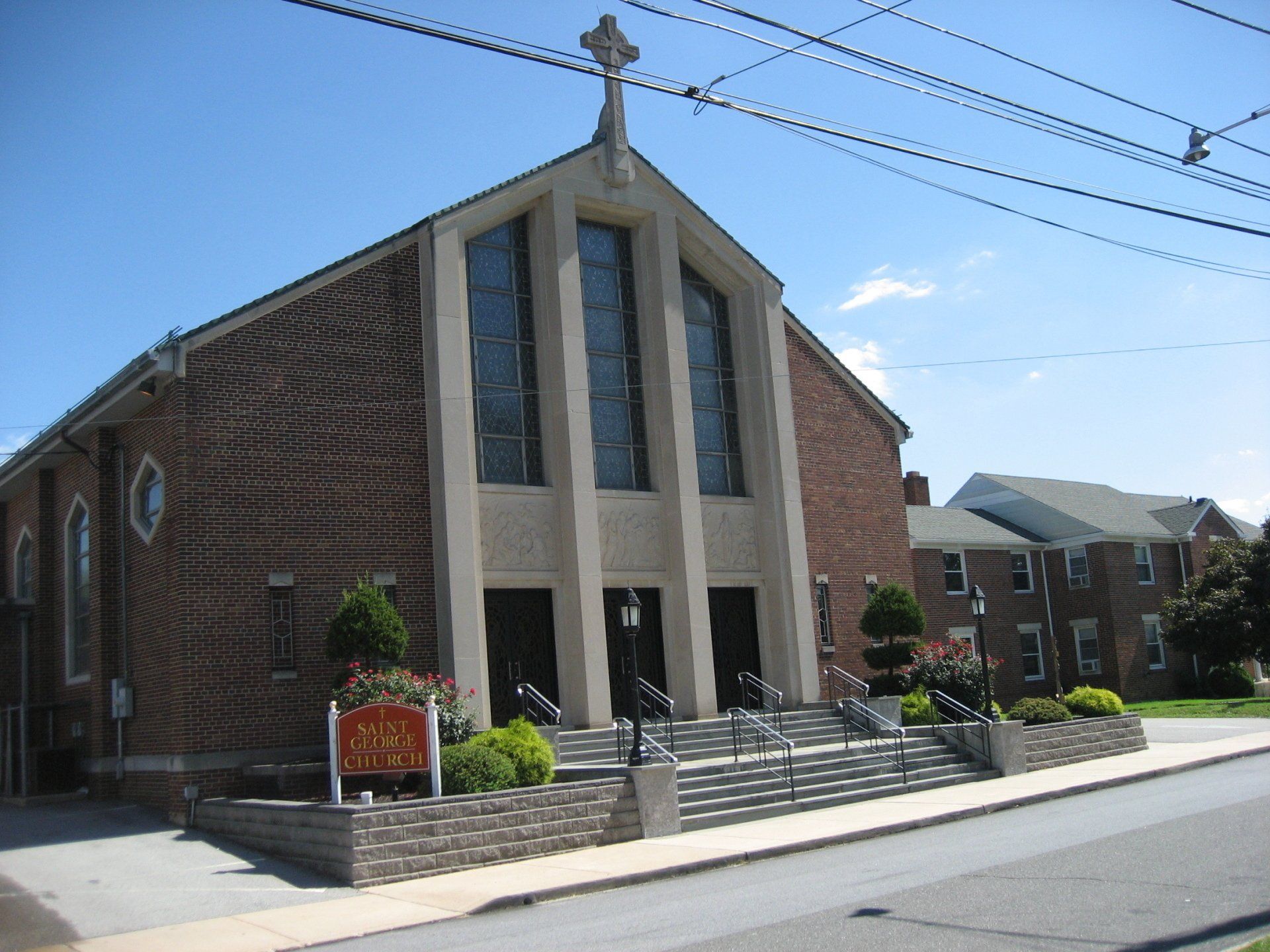 The first order of business was to secure a temporary place to say Mass until property could be bought and buildings erected. This was done by obtaining permission to use Williamson Hall, coated on the second floor of an American Store at Chester Pike and Logan Avenue. The first Masses were celebrated at 8:00 AM and 10:00 AM on Sunday, June 10, 1923, only eight days after Father Orr's appointment. Collecton envelopes were distributed to the parishioners, and the first Sunday colleciton amounted to $88.16. During that same month, the first parish picnic was held. Thus began traditions of fun, friendship, and social gatherings, many of which continue to this day, and which are hallmarks of St. George Parish.